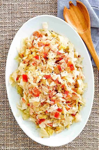 This luby cooked cabbage recipe is a great source of fiber and vitamins A, C, and K. It is also low in calories and fat, making it a healthy and nutritious meal. One serving of this dish contains approximately: